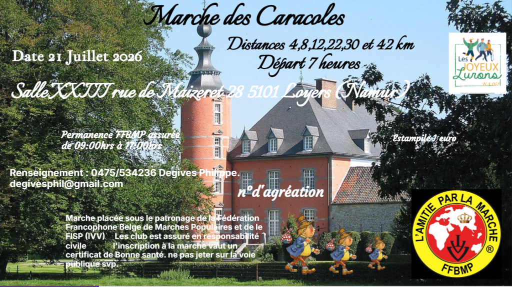 Nos marches en 2026 Le mardi 28 Avril – 4 ème marche de détente Le dimanche 5 avril – 6ème marche des Crocus Le mardi 21 juillet – Marche des Caracoles